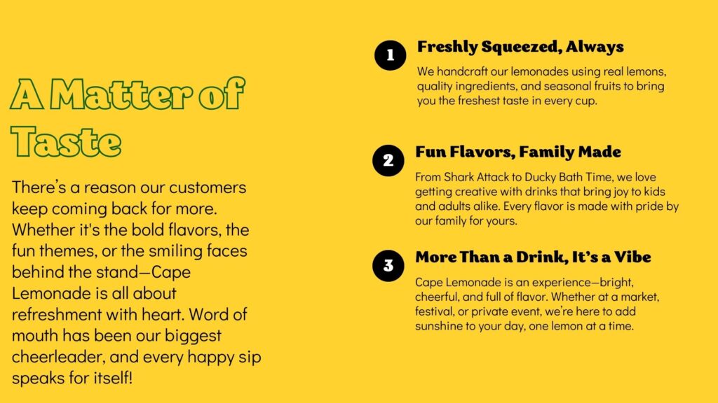 Cape Lemonade is a family-owned business serving fresh handcrafted lemonades, specialty coffee drinks, and sweet treats throughout Cape Coral and Southwest Florida. We are passionate about bringing smiles and refreshing flavors to local markets, festivals, and community events.